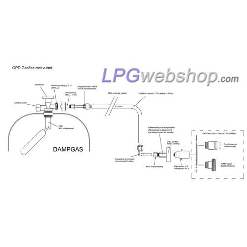 Eine OPD-GASFLASCHE verfügt nur über einen Anschluss sowohl zum Befüllen der Gasflasche als auch zum Gasverbrauch. Genauso wie man eine Wasserflasche auffüllt und dann wieder daraus trinkt.