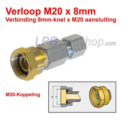 Adapter M20 x 8mm compression fitting for M20 pressure regulator inlet