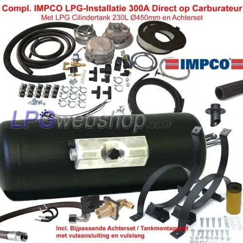 Compl. IMPCO LPG Kit with 300A Direct on Carb. + Cyl. LPG Tank 230L (Ø450mm x 1571mm)