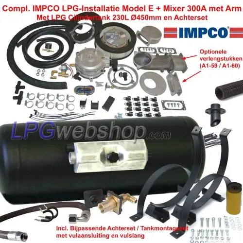 TYPE : Complete IMPCO LPG Kit with 300A Mixer + extension arm next to Carburettor and Cylindrical LPG Tank 230L