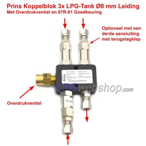 To be able to connect the outputs of two or three LPG tanks safely wey and in accordance with RDW regulations to one LPG line to the engine compartment. The non-return valves ensure that the LPG cannot flow from one tank to the other.
