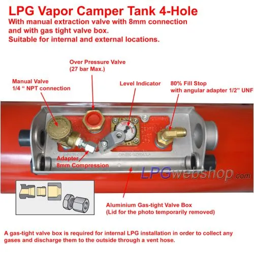Read more about this in our tutorial Installation instructions for LPG cylinder tanks (vapor tanks) in (recreational) vehicles