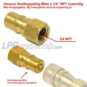 | Hansun Quick coupling Male x 1/4” NPT female with non-return valve | +€12.26 |