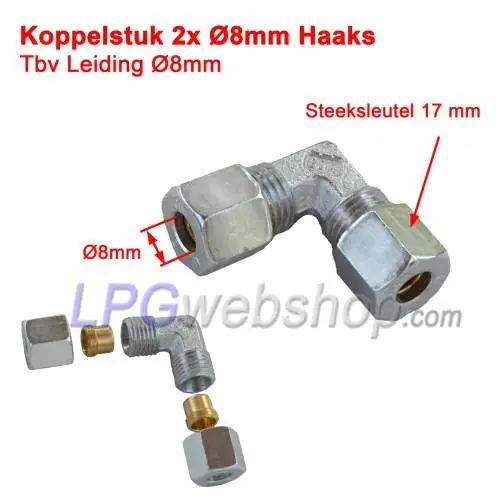 Type: GOK Coupling piece 2x Ø8mm Angled - Pipe connection Compression coupling. See image for further illustration.