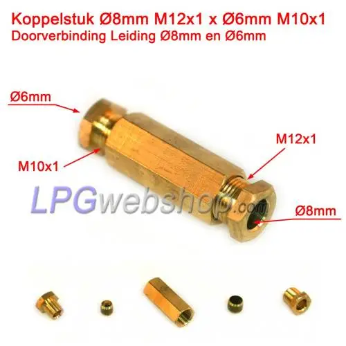 Coupling LPG pipe Ø8mm M12x1 x Ø6mm M10x1 Barrel Compression Nut