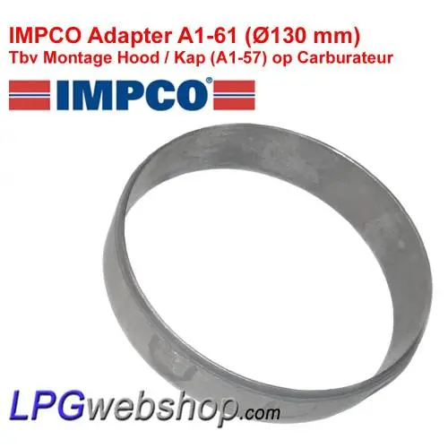 Adapter ring between the IMPCO hood (A1-57) and a carburetor with a connection diameter of 130 mm on top. For making an arm on the carburetor to position the 300A mixer next to it. For American classics with the brands; Chevrolet, Ford, Chrysler, Dodge, Cadillac, etc. to run on LPG in combination with an Mixers model 300A .
