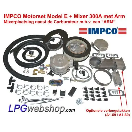 This arm is used if there is not enough space under the hood to place the mixer on top of the carburetor. The arm consists of a number of parts for the carburetor such as an A1-57 (Hood / Hood), a suitable adapter (A1-54 / A1-55 / A1-61) to make the hood fit on the carburetor, a number of extension parts (with or without an angle) and an end piece A1-63 Unidapt on which the mixer can be mounted.
