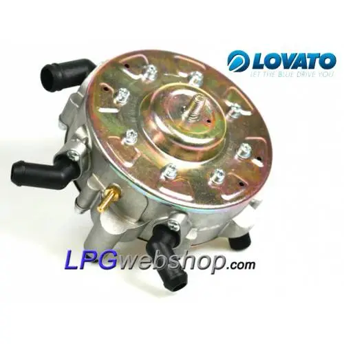 The LOVATO RGV090 (basic type RG92) is a two-stage reducer for LPG mixing piece systems and is homologated according to European regulation ECE 67R-01. The reducer is equipped with a solenoid valve to give a gas start quantity and an integrated idle adjustment screw.