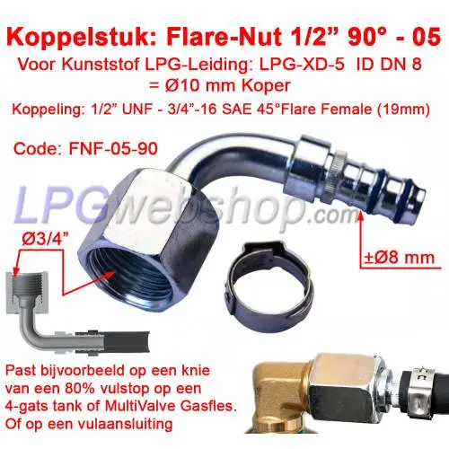 A plastic LPG flex pipe is not connected directly to an LPG part, but coupling pieces are used on the ends of the pipe. These come in different shapes and sizes. There are also several types of plastic LPG pipe available. There are different diameters, but also brands and types of connectors. Make sure you use the correct one for your application in combination with the correct coupling pieces on the ends of the plastic pipe. Together with pipe you can choose which type of coupling pieces and how many you want to optionally order. Use the correct couplings depending on the type of connection to the LPG component and the available space.