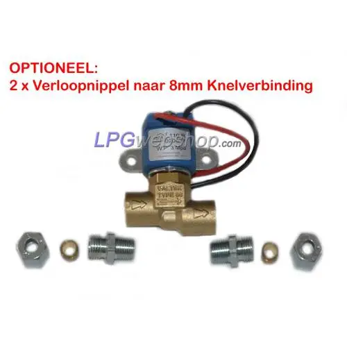 An LPG gas shut-off valve is a safety requirement and serves to shut off the supply of liquid LPG and is placed before the LPG evaporator (end of LPG pipe coming from the LPG tank). This type is often used in combination with 8mm LPG piping and on IMPCO systems.