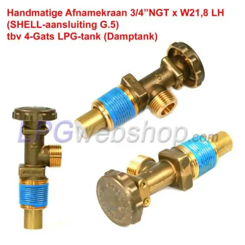 LPG Gas Manual extraction Valve to connect on a LPG (vapour)tank or gas bottle (3/4 NPT) with a SHELL exit connection with left thread.