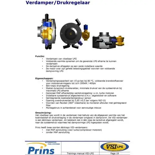 For Prins VSI Reducer Gas injection systems and engines up to 250 kW (340 HP) with or without Turbo.