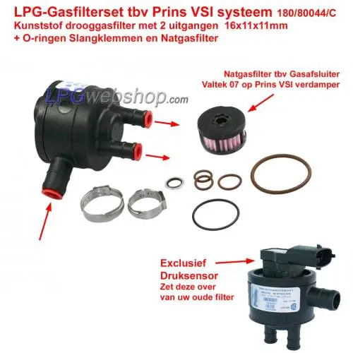 Gas systems: LPG Filter for Prins VSI 1.0 and 2.0 and Eurogas Omegas 1.0 with 2x Keihin Injector Rails