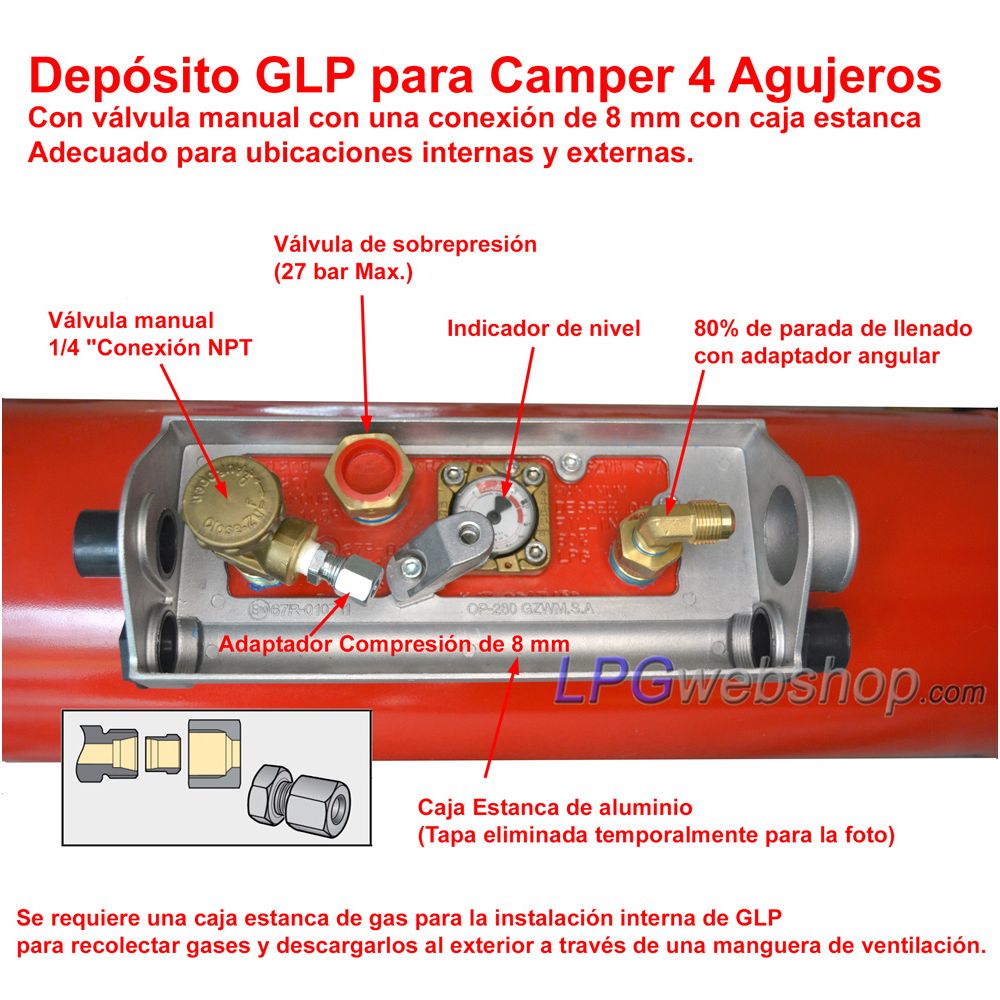 Tipo: GZWM ZC400/90P - 4-Agujeros con Válvulas incluidas Aprobación: E20 67R-010622 Capacidad del tanque: Bruto 100 litros (80%=80 litros)...