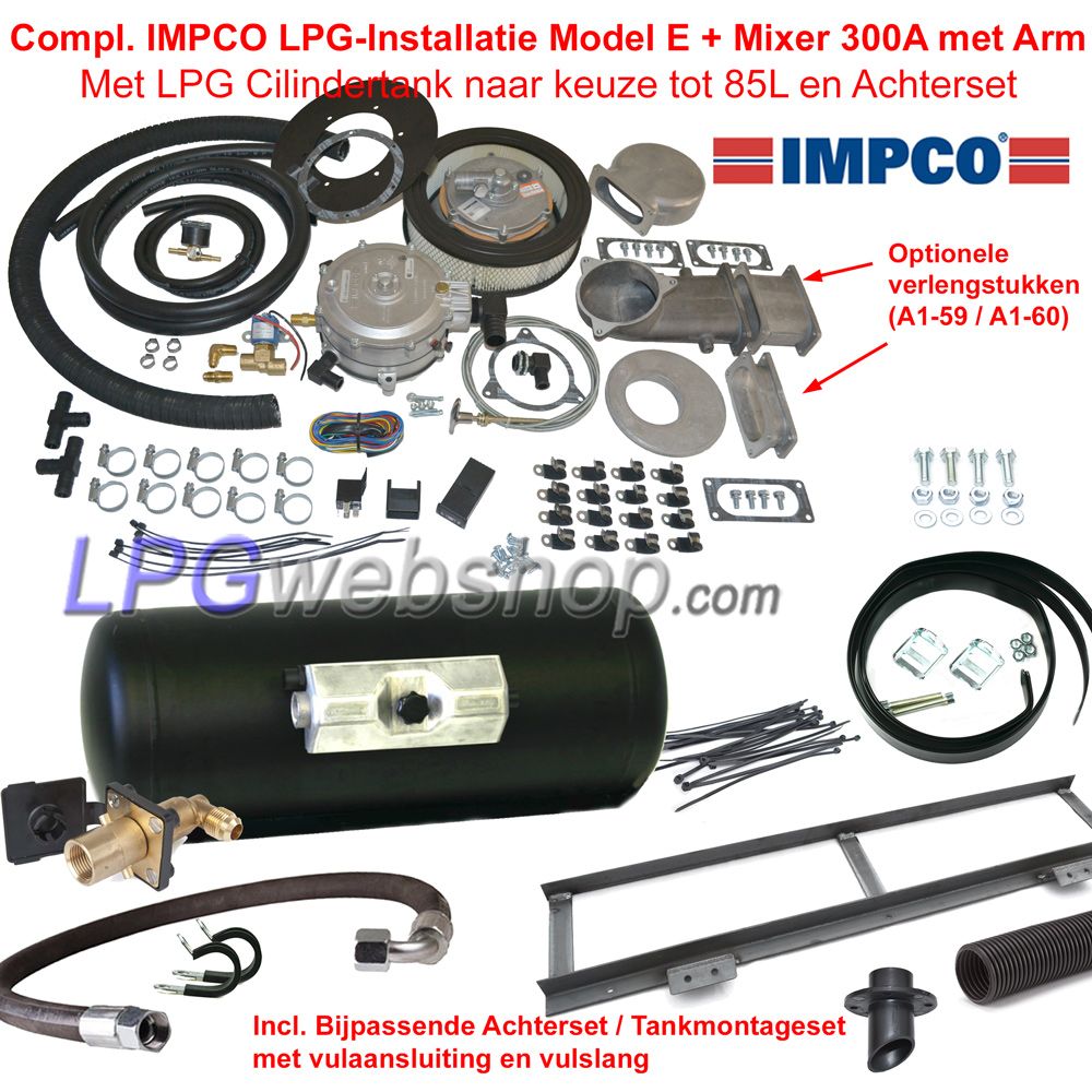 Kit completo de GLP IMPCO de 300 A en brazo + Deposito Cilindrico de GLP hasta 85 L.