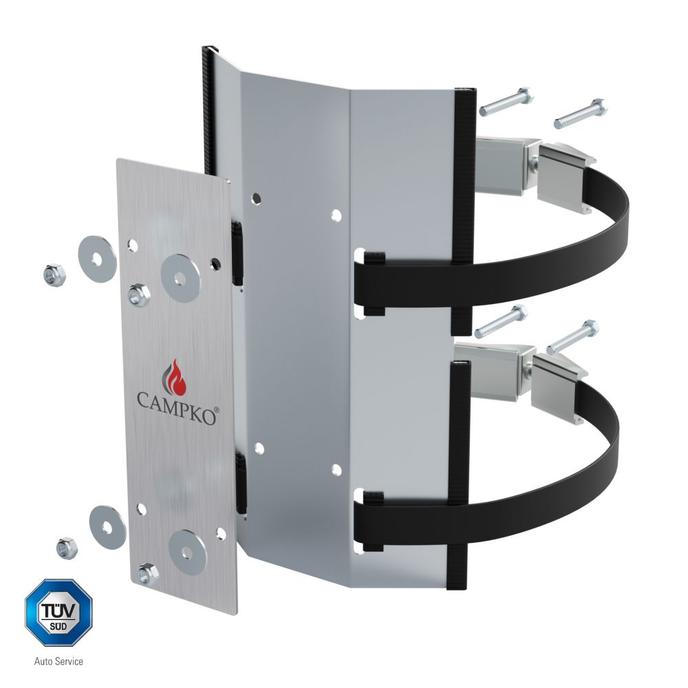 Soporte para bombonas de gas CAMPKO de acero inoxidable de Ø300 mm, incluye 2 correas tensoras.