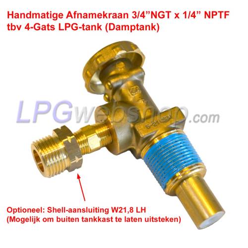 Válvula de toma manual Rotarex (válvula de tanque) 3/4”NGT x 1/4” NPT para tanque de GLP de 4 orificios (tanque de vapor)
