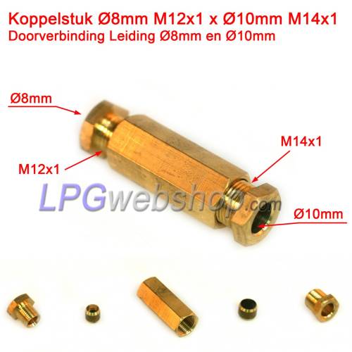 Acoplamiento de tubería GLP Ø8mm M12x1 x Ø10mm M14x1 Unión