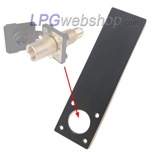Utilizando los orificios previamente perforados, puede montar fácilmente una conexión de llenado de GLP cuadrada (por ejemplo, un llenador plano o alto).