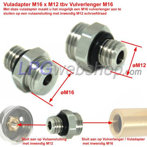 El tamaño M12 rara vez se encuentra en las conexiones de llenado. Normalmente, en un Mini-Filler se utiliza un M10 interno, un M14 interno (Opel) o un M16 externo.
