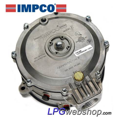 El Modelo E de IMPCO es un regulador/evaporador de dos etapas calentado por refrigerante. El Modelo E ofrece dos opciones de presión de salida negativa. Un resorte secundario azul proporciona una salida de -1.5" w.c. (0.37 kPa), y un resorte secundario naranja opcional proporciona una salida de -0.5" w.c. (0.12 kPa). El cebador manual es estándar en el Modelo E.