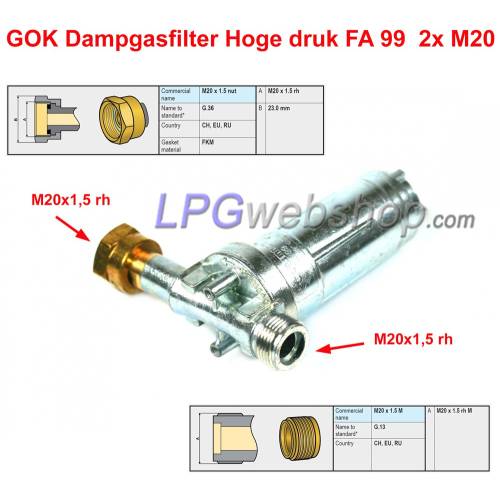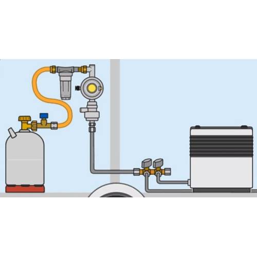 Se adapta a la entrada de varios reguladores de presión con conexión M20x1,5, como los de la serie GOK Caramatic, Truma y CAVAGNA. Protege el regulador de presión y la válvula de conmutación automática contra la contaminación por parafina (aerosoles aceitosos y residuos de evaporación). Coloque este filtro de gas antes de la entrada del regulador de presión para evitar la contaminación del resto del sistema. Conecte la bombona de gas a este filtro de alta presión mediante una manguera de gas de alta presión, disponible en diferentes longitudes y con o sin válvula de seguridad.