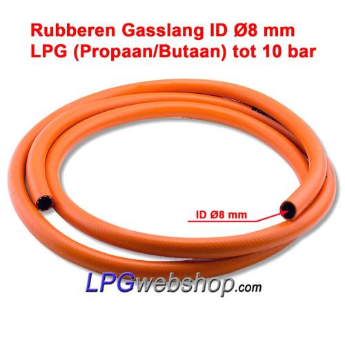 Manguera de gas de caucho Ø8 mm para GLP (propano/butano) máx. 10 bar por metro