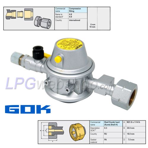 Regulador de presión GOK EN61-DS Caramatic BasicOne 30mbar 1,5kg/h - Shell Komb.A W21,8 x RVS 8mm