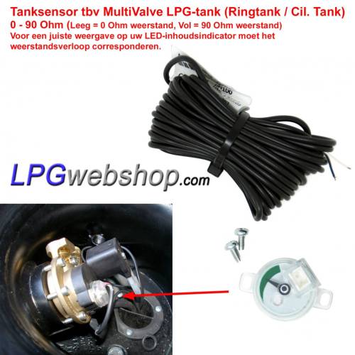 Sensor de tanque de 0 a 90 ohmios para tanque de GLP MultiValve (tanque de anillo/tanque de cilindro) incluido cableado de 5 m.