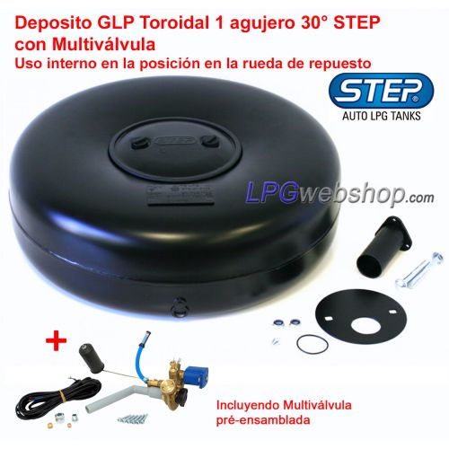 Depósito GLP Toroidal 61L (Ø680x225) STEP 1-Agujero 30° Interior Multiválvula incluida