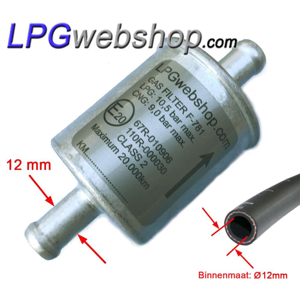Filtre gazeux GPL phase gazeuse F-781 - Dimensions 12 x 12 mm - Aluminium
