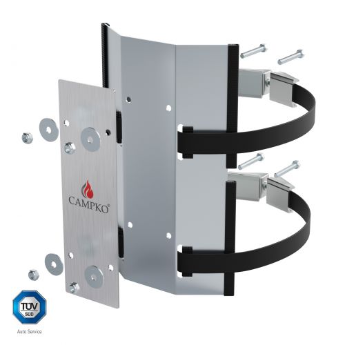 La contre-plaque sert à fixer un support de bouteille de gaz CAMPKO afin de mieux fixer la bouteille de gaz rechargeable dans le coffre à gaz. Lors de l'installation, la contre-plaque CAMPKO est vissée à la paroi extérieure du coffre à gaz avec le support de bouteille de gaz, formant ainsi une liaison stable avec la paroi du coffre.