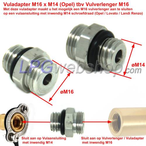 Adaptateur de remplissage M16 x M10 pour raccord de remplissage M14 (Opel OEM / Lovato / Landi Renzo)