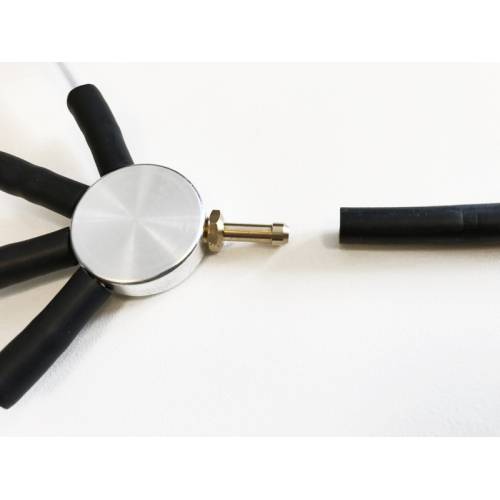 Entrée avec raccord fileté M4 et raccord cannelé séparé inclus, ce qui le rend adapté aux systèmes à vide et électroniques.