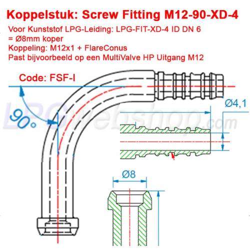 Utilisé en combinaison avec le tuyau GPL en plastique LPG-XD-4 DN 6 (= Ø8 mm Cuivre) et une pièce GPL avec un raccord M12x1.