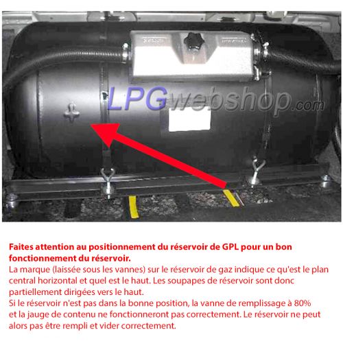 Position du réservoir : Horizontal (avec la marque dans la bonne position)