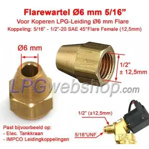 | Wartel 6mm voor koperen leiding op tankkraan 5/16" UNF - Flare aansluiting | +€ 1,46 |