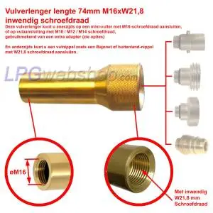 Dit type buitenvuller wordt een "mini-vuller" genoemd, omdat deze klein en compact is en geen vaste geïntegreerde vulnippel heeft. Dit type vulaansluiting kunt u door zijn geringe afmetingen bijvoorbeeld achter het benzineklepje plaatsen. Om te tanken is het nodig om een vulnippel op de vulaansluiting te schroeven (met M16 inwendig schroefdraad).