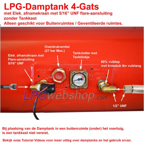 Vind meer informatie over een juiste installatie en montage van een LPG-Dampgastank (cilinder) in onze handleiding: LPG-TANK INSTALLATIE INSTRUCTIES